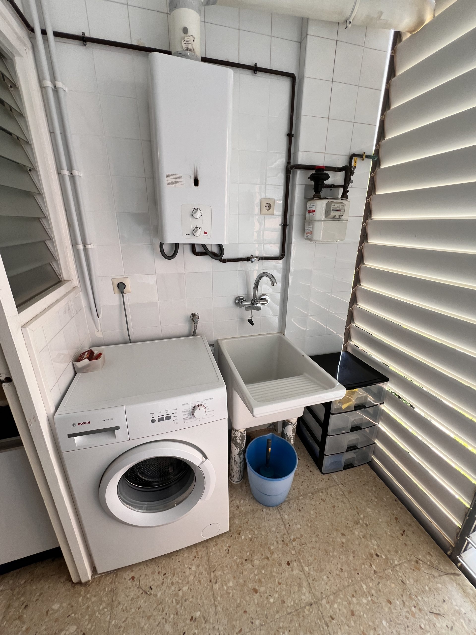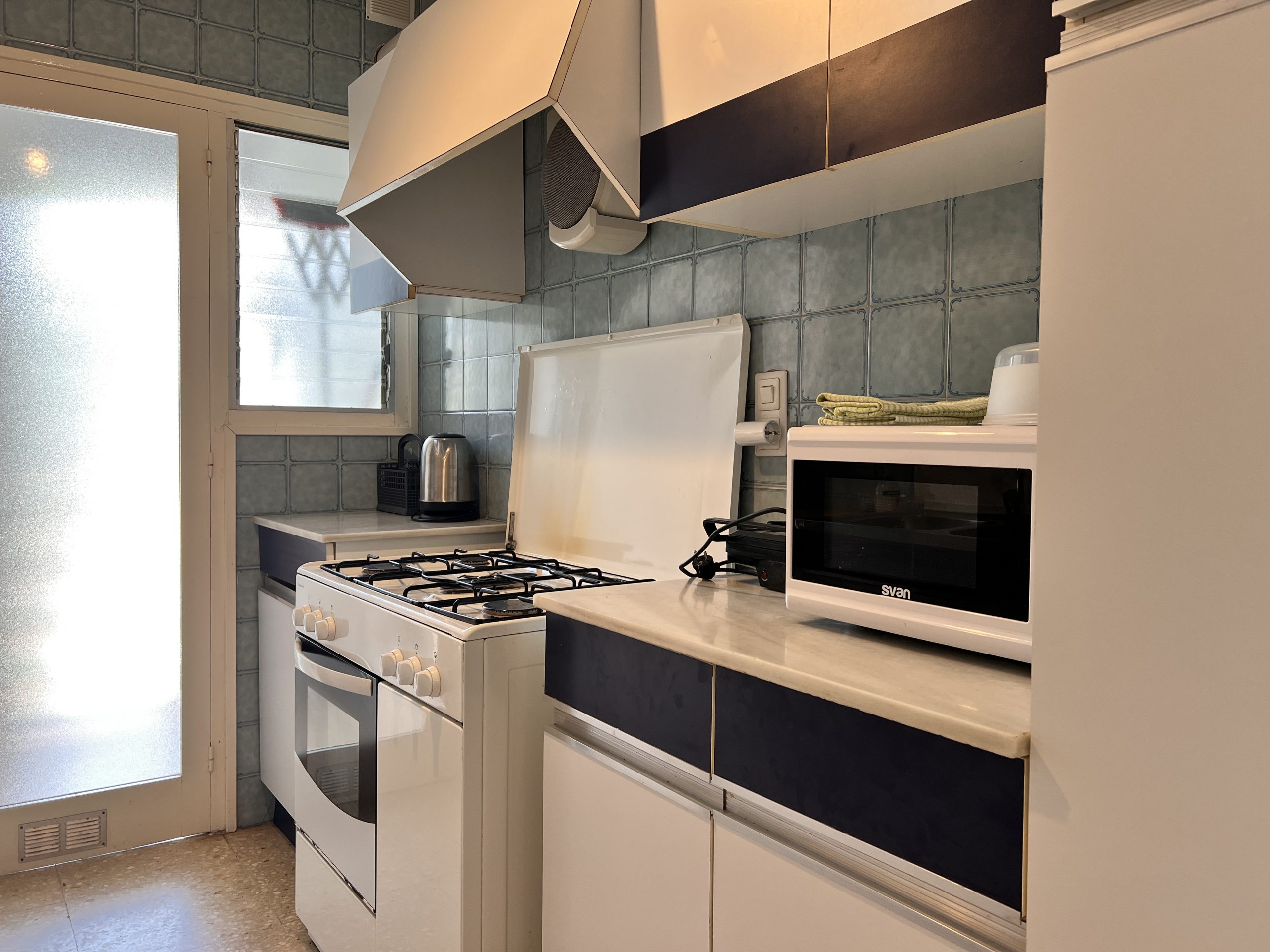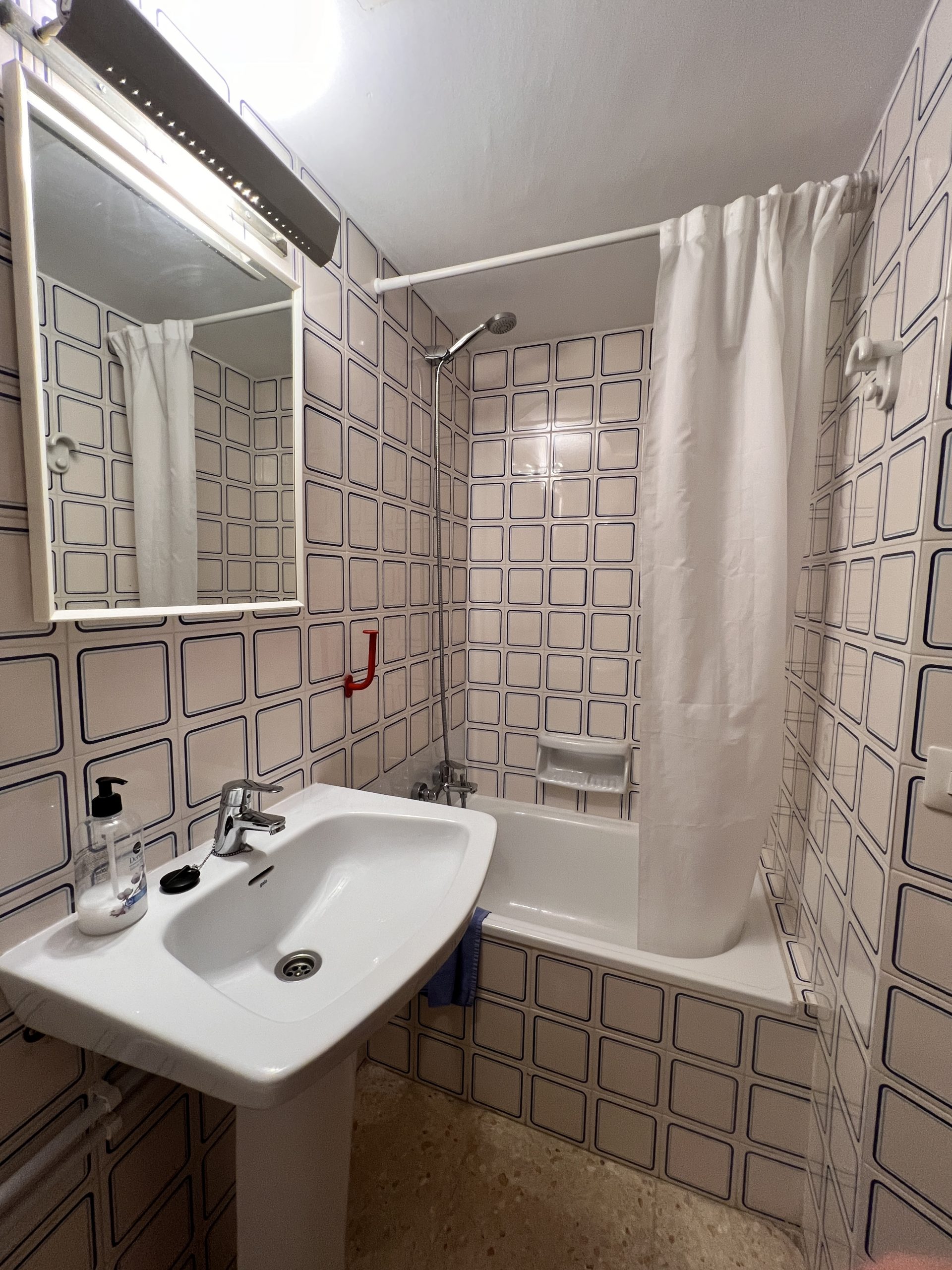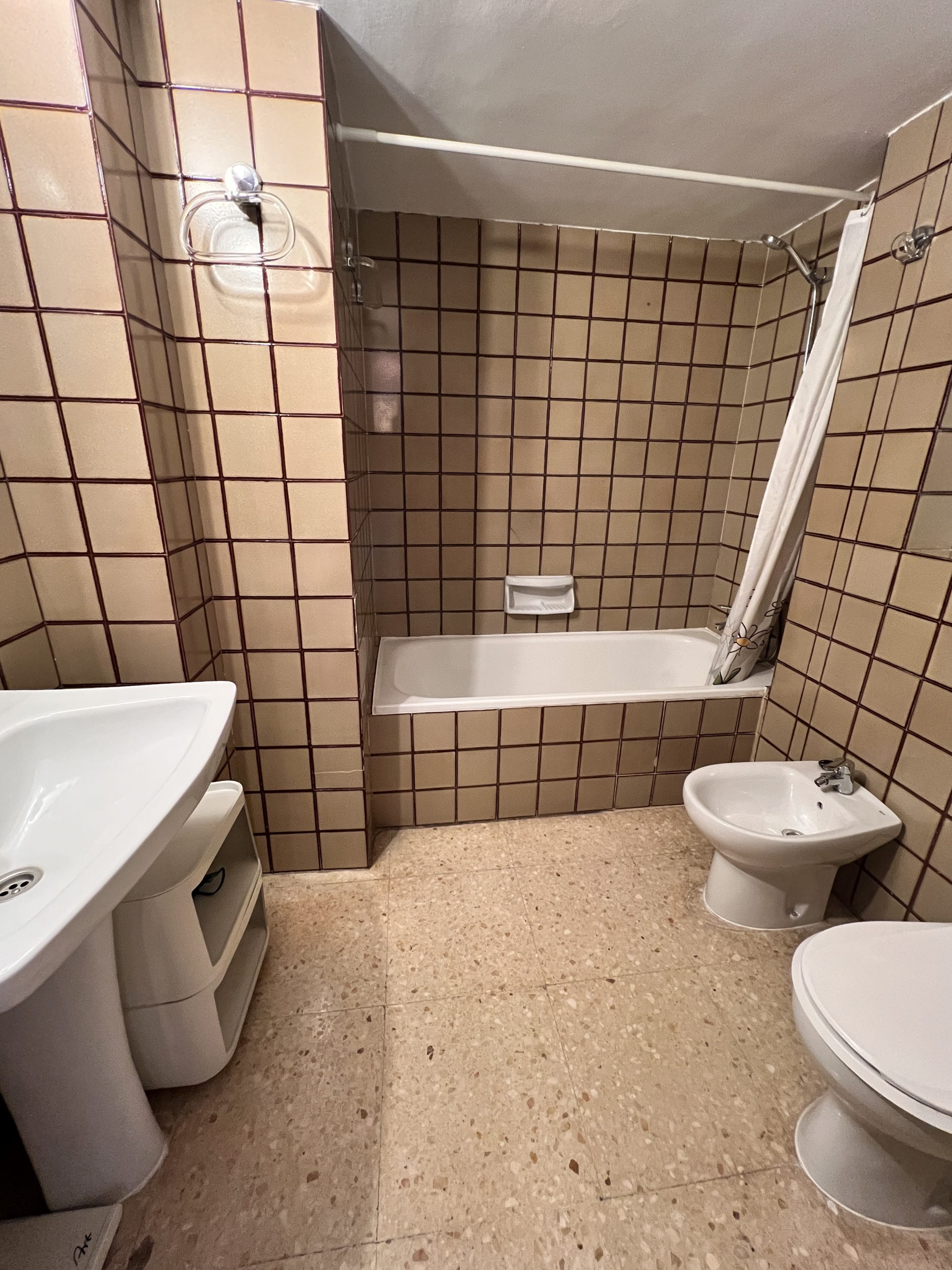 La cocina está equipada con todo lo necesario para preparar tus comidas: fogones, horno, microondas, cafetera, tostadora y lavavajillas para tu mayor comodidad. Además, el apartamento dispone de dos baños completos, uno con ducha y otro con bañera, lo que facilita la convivencia diaria.