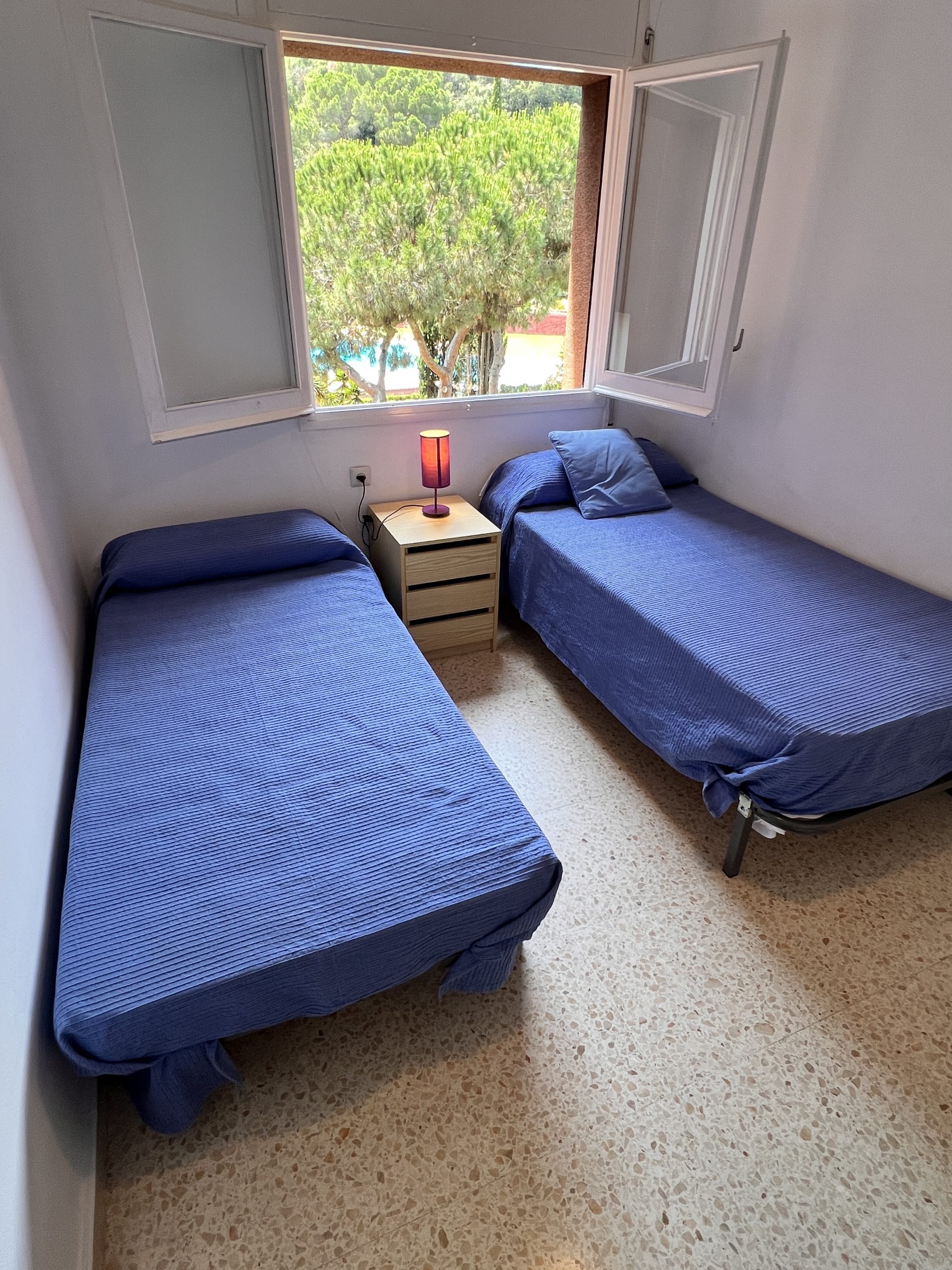 El apartamento cuenta con tres habitaciones pensadas para adaptarse a diferentes tipos de grupos: una habitación con cama doble, otra con dos camas individuales y una tercera con cama individual. Ideal para familias o grupos de amigos que buscan compartir momentos sin renunciar al descanso.