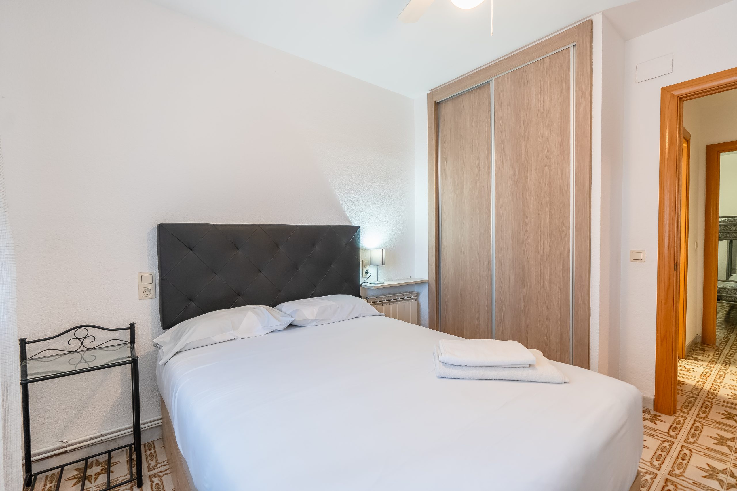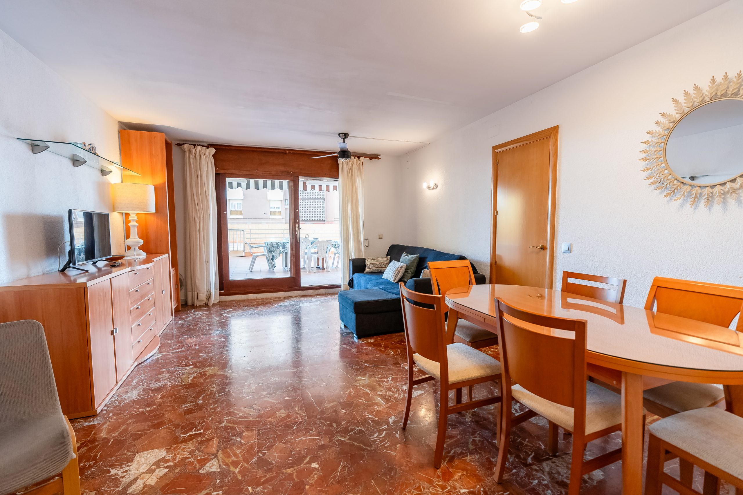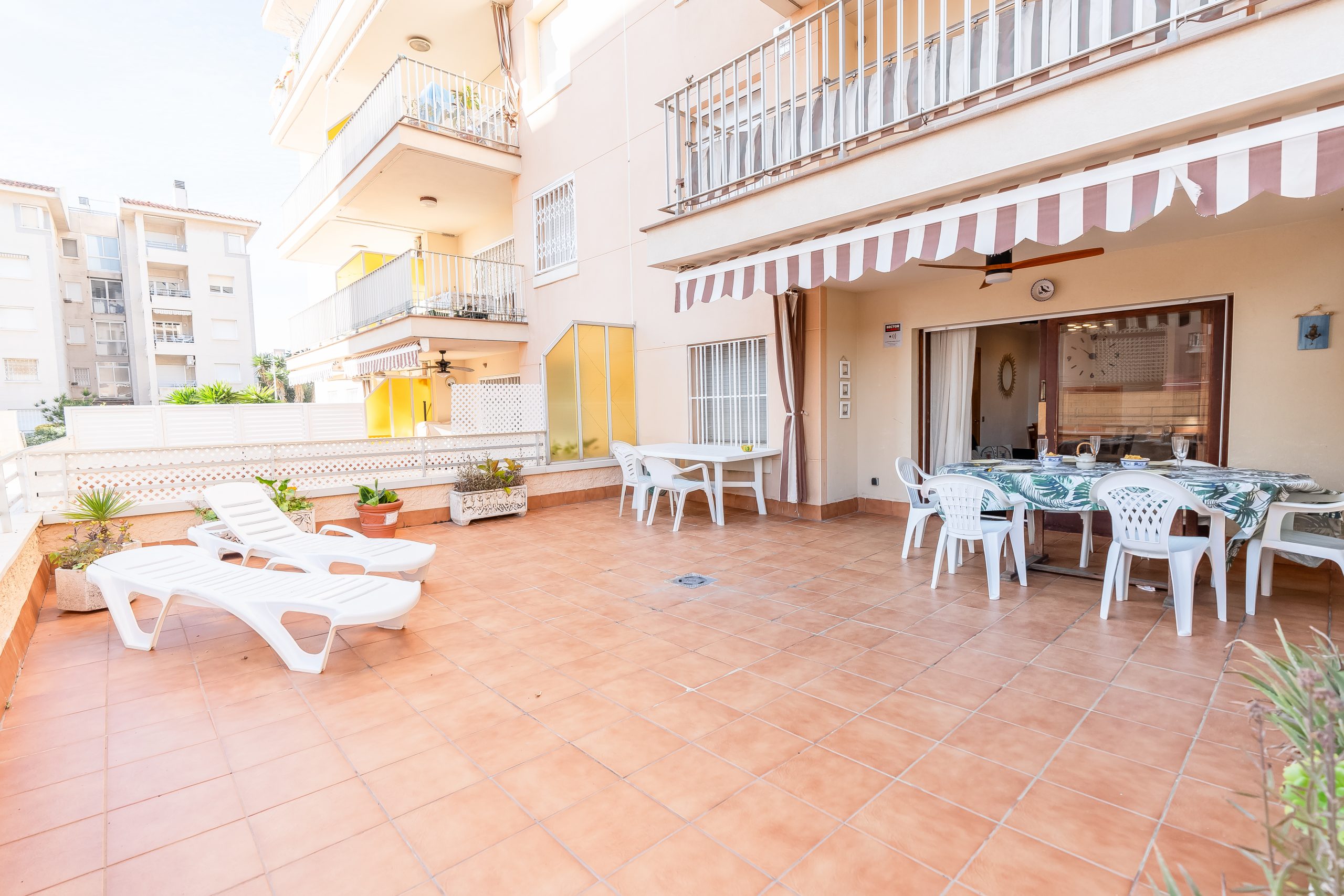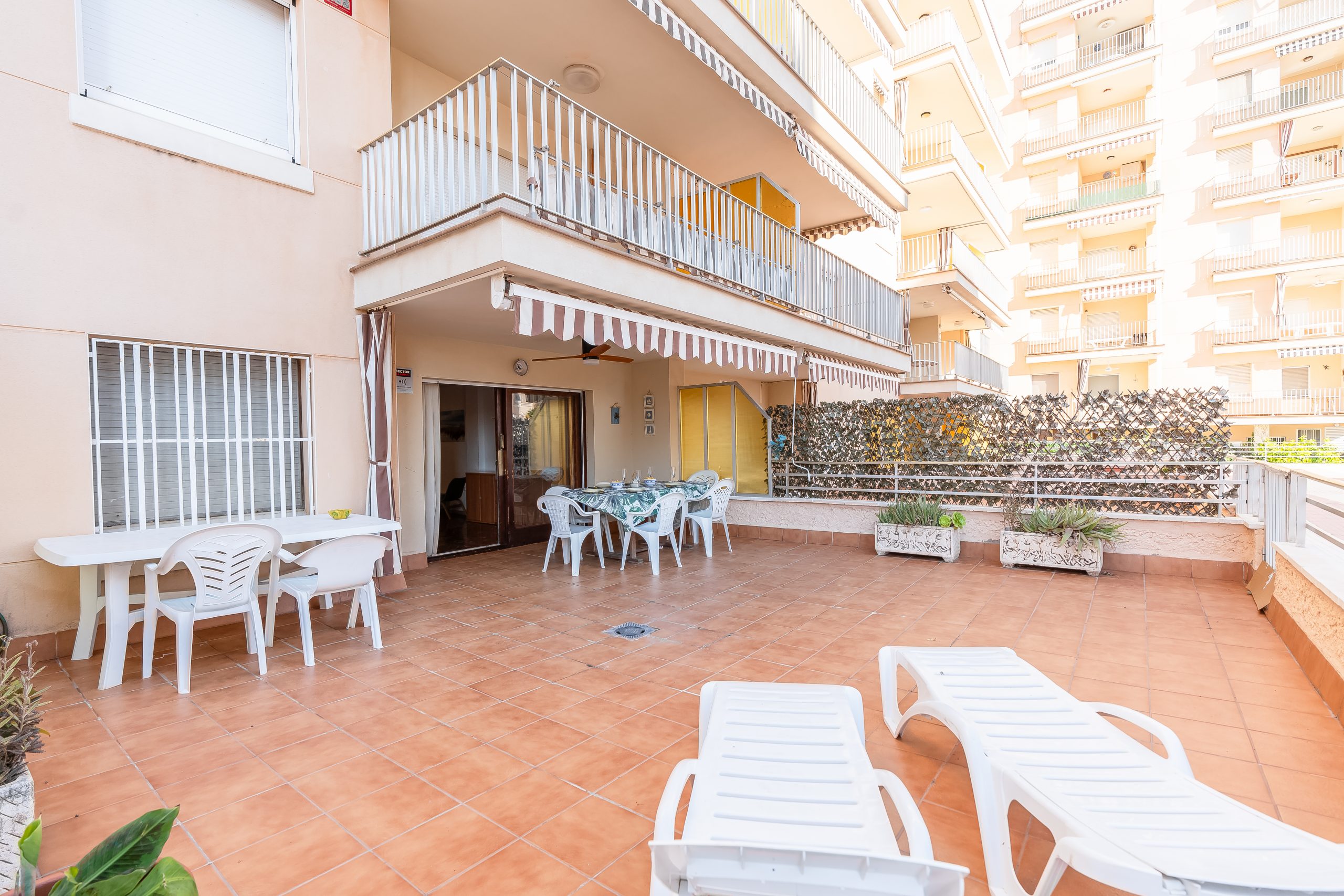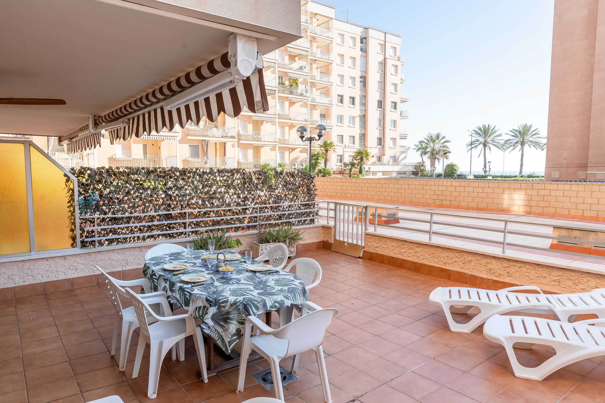 El alojamiento cuenta con 3 dormitorios amplios y luminosos, configurados para alojar cómodamente a 6 personas. Dispone de dos habitaciones con cama doble y una tercera con dos camas individuales, además de 2 baños completos que garantizan la privacidad de todos los huéspedes. El salón-comedor destaca por su acceso directo a una terraza privada, el lugar perfecto para desayunar contemplando el Mediterráneo o relajarse tras un día de sol.