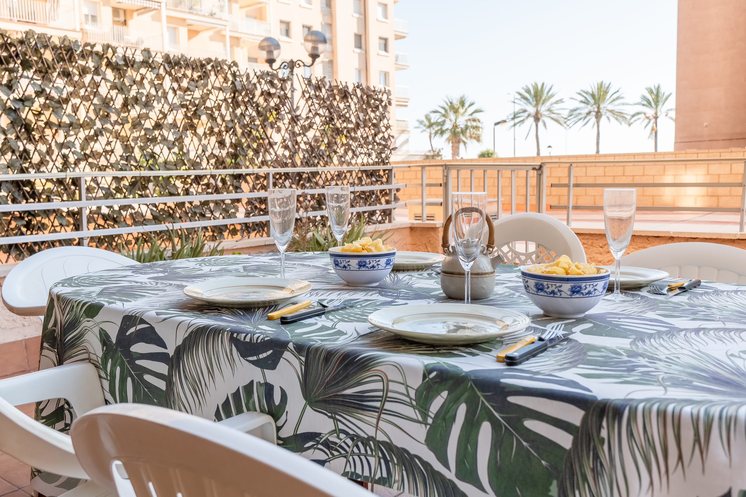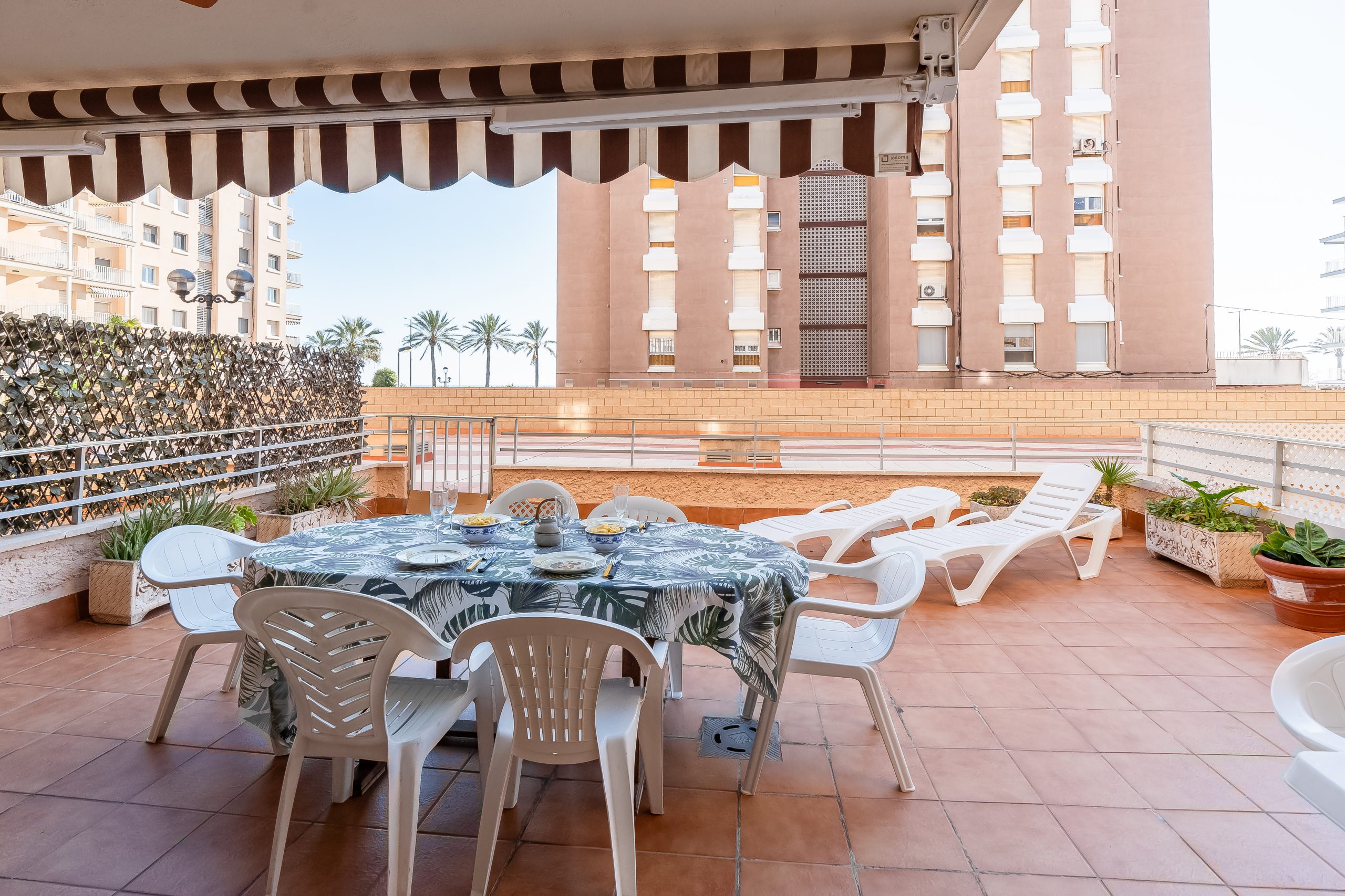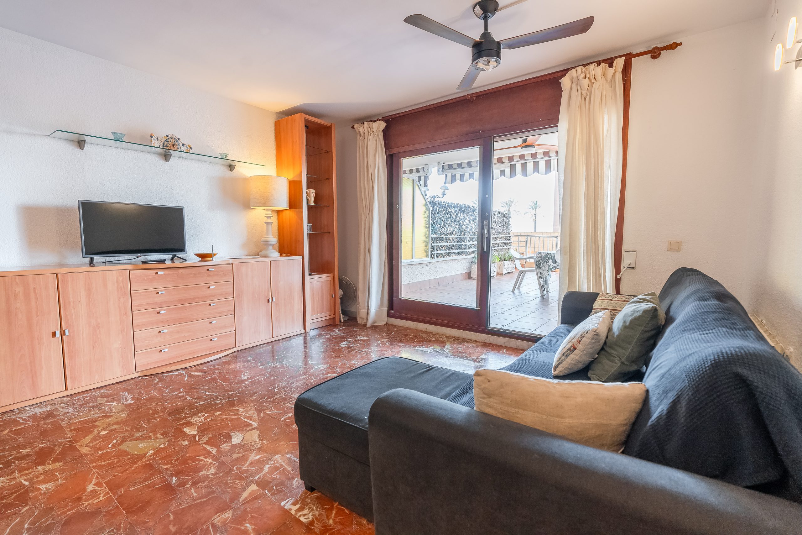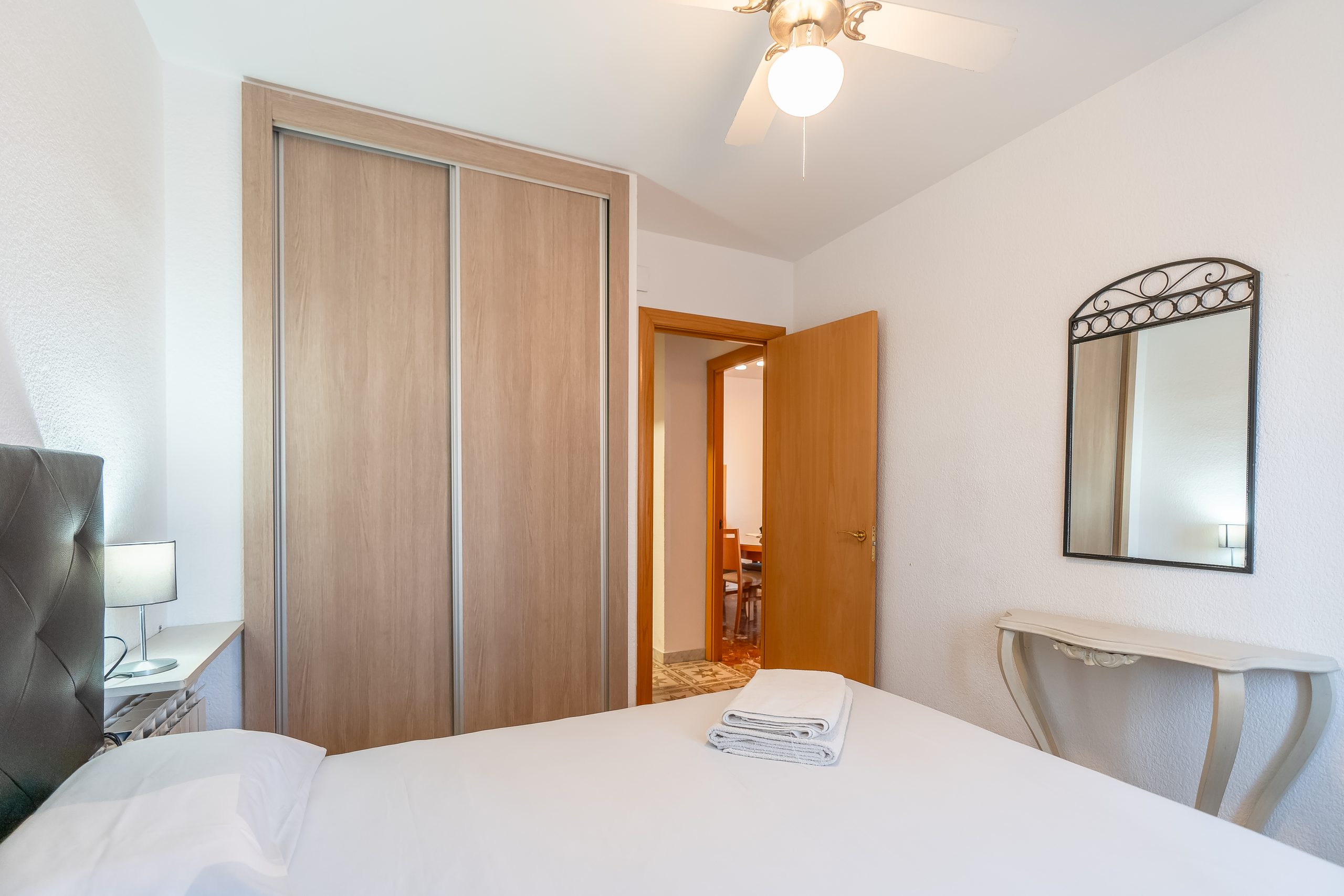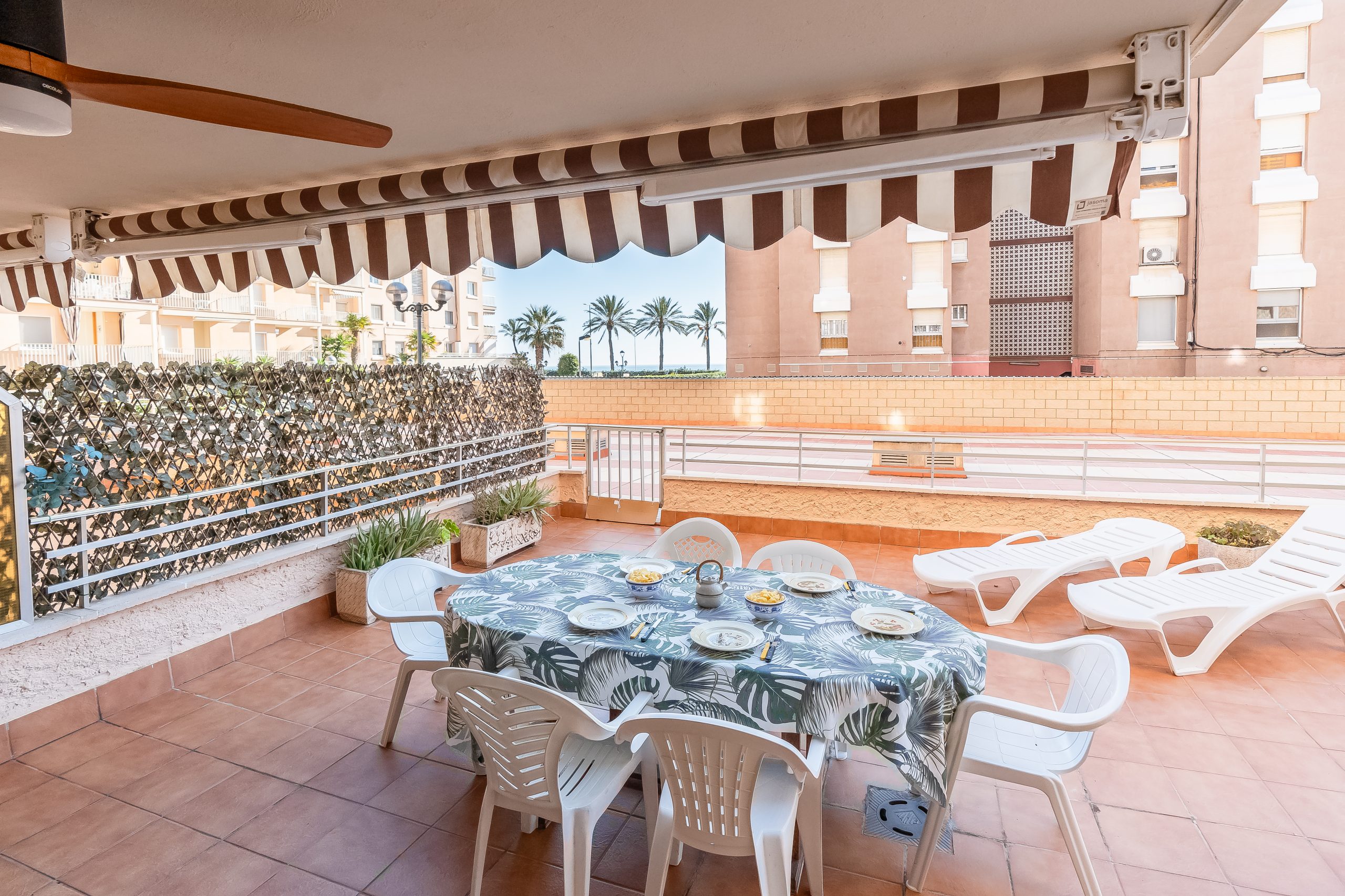 El alojamiento cuenta con 3 dormitorios amplios y luminosos, configurados para alojar cómodamente a 6 personas. Dispone de dos habitaciones con cama doble y una tercera con dos camas individuales, además de 2 baños completos que garantizan la privacidad de todos los huéspedes. El salón-comedor destaca por su acceso directo a una terraza privada, el lugar perfecto para desayunar contemplando el Mediterráneo o relajarse tras un día de sol.