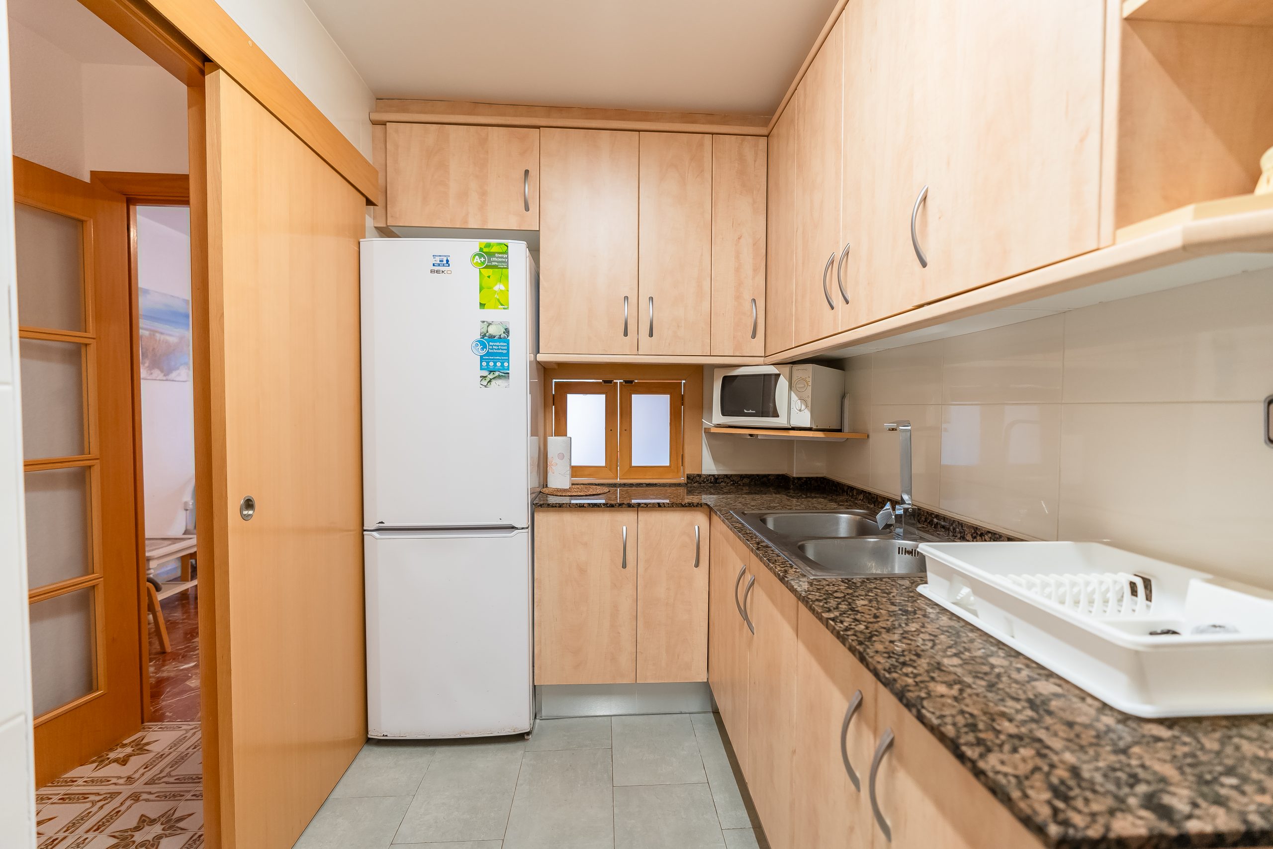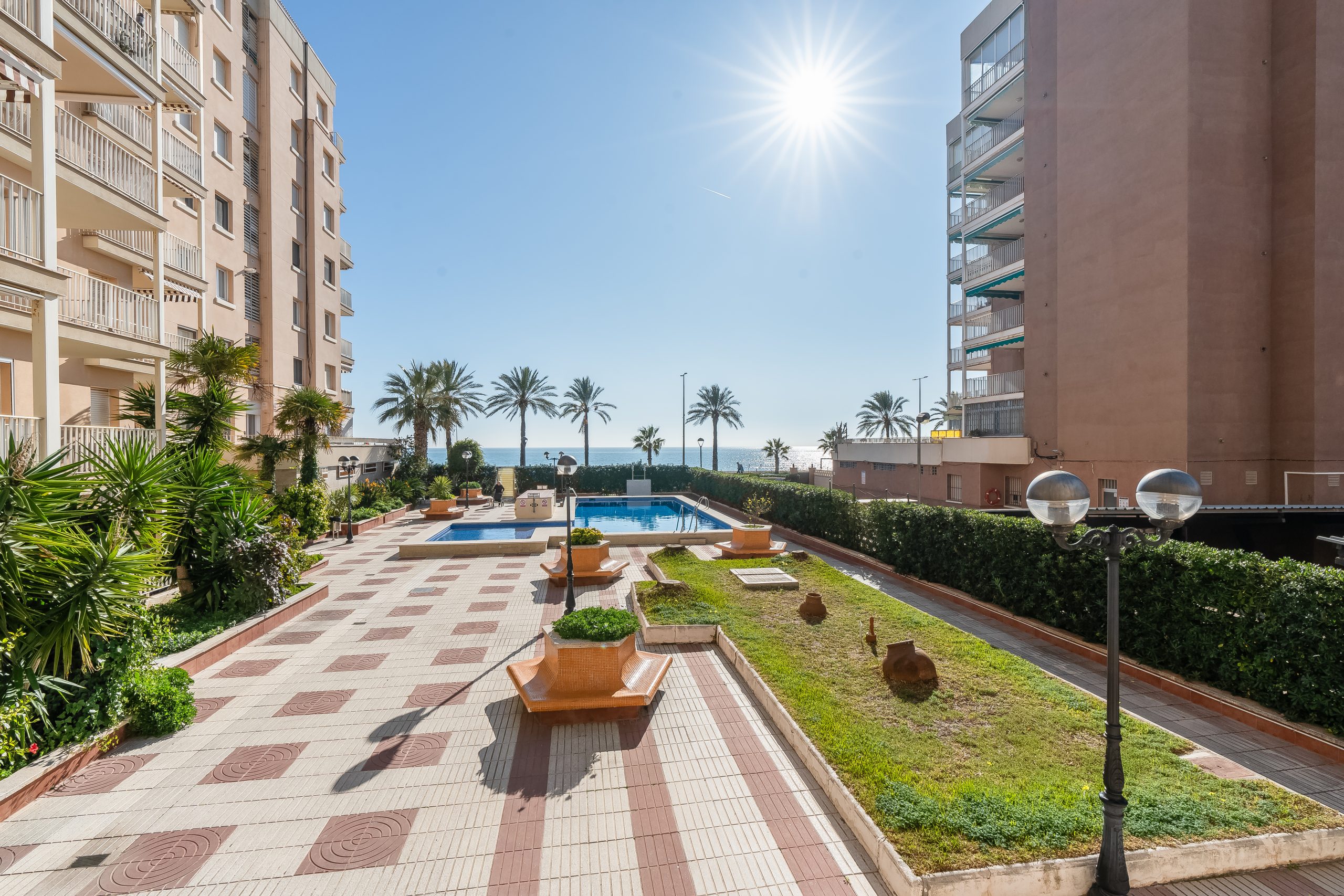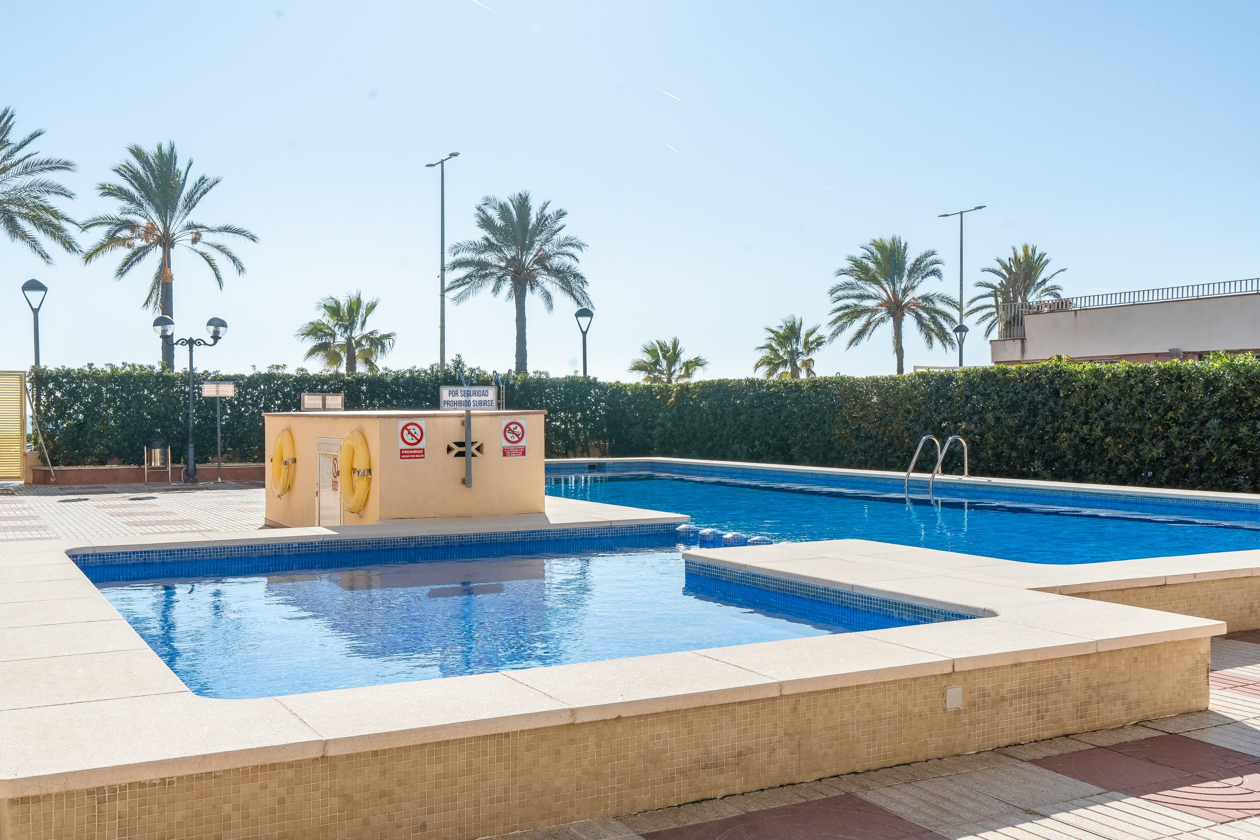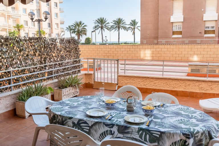 El complejo residencial es ideal para familias, ofreciendo dos piscinas cristalinas rodeadas de zonas verdes y acceso directo a la playa. Además, para tu total comodidad, el apartamento incluye aire acondicionado, cocina equipada con electrodomésticos modernos y plaza de parking privada.