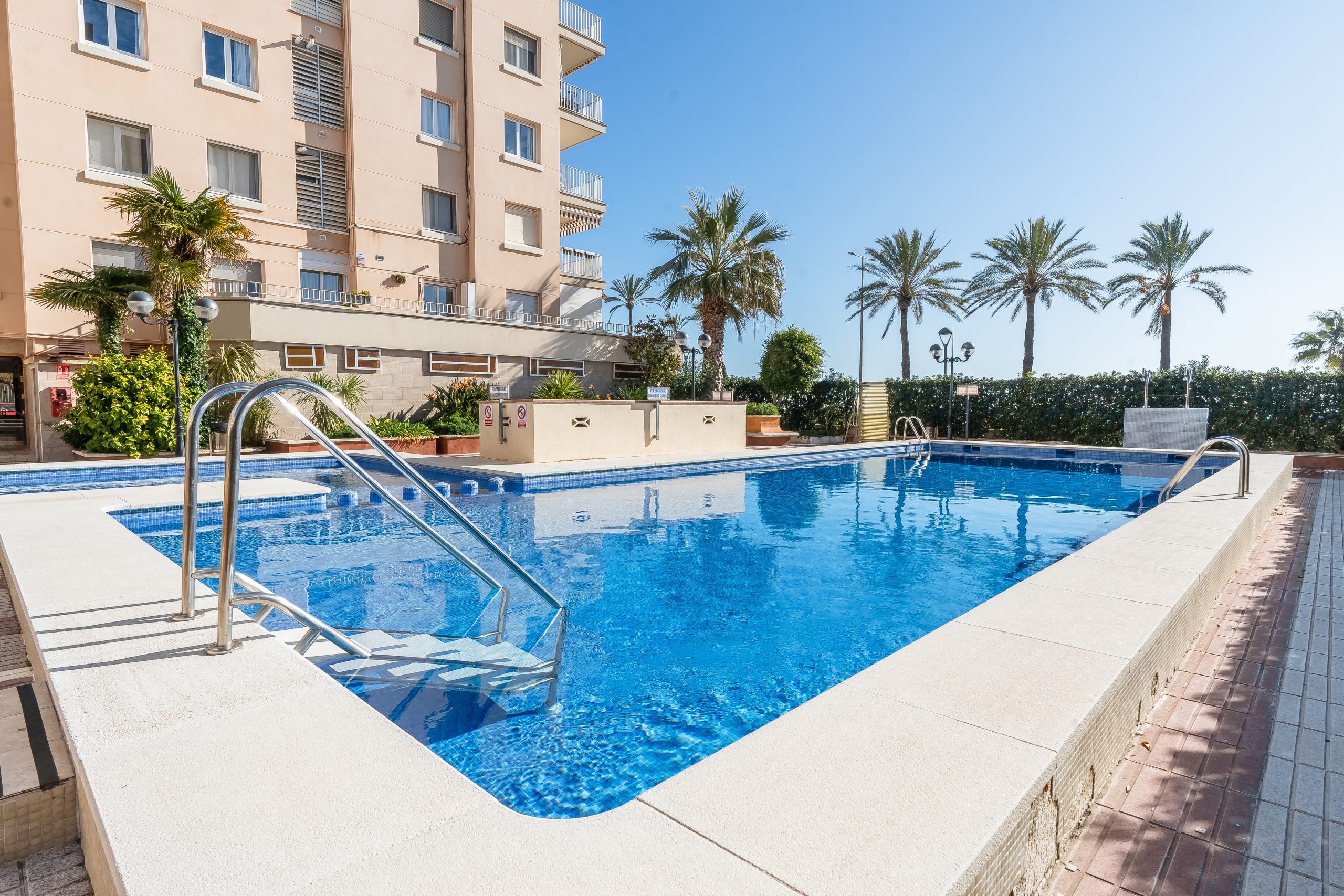 Apartamento en 1ª línea de mar con dos piscinas y vistas frontales.